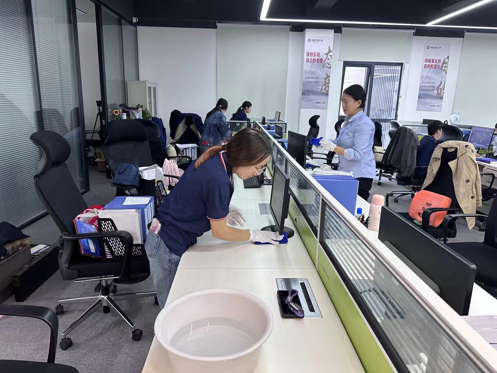 隨著指令的響起,協(xié)格的家人們仿佛被注入了不竭的活力,他們手持清潔利器,如同手持魔杖的精靈,分組穿梭于辦公區(qū)的每一個(gè)角落。這是一場無聲的戰(zhàn)役,卻處處洋溢著團(tuán)結(jié)與奮進(jìn)的旋律。汗水與笑容交織,每一處塵埃的消散,都是對(duì)美好環(huán)境的深情告白,每一次用力的擦拭,都是對(duì)“徹底”二字的深刻詮釋。