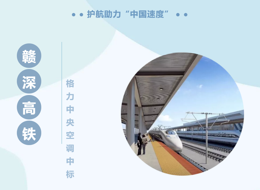 喜訊|格力中央空調(diào)再次中標(biāo)贛深高鐵,護(hù)航助力“中國(guó)速度”,本次項(xiàng)目共選用格力中央空調(diào)機(jī)房空調(diào)700臺(tái)、格力磁懸浮離心式冷水中央空調(diào)機(jī)組3臺(tái)、格力蒸發(fā)冷卻一體式冷水中央空調(diào)機(jī)組16臺(tái)、格力變頻離心式中央....