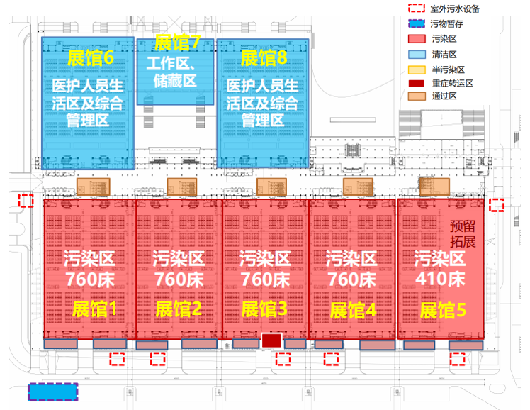 “方艙避難所”是臨時(shí)緊急醫(yī)療救治場(chǎng)所。為解決這一問題,利用現(xiàn)有建筑物,在最短的時(shí)間內(nèi)改造臨時(shí)處理場(chǎng)所,由清潔區(qū)和污染區(qū)組成。