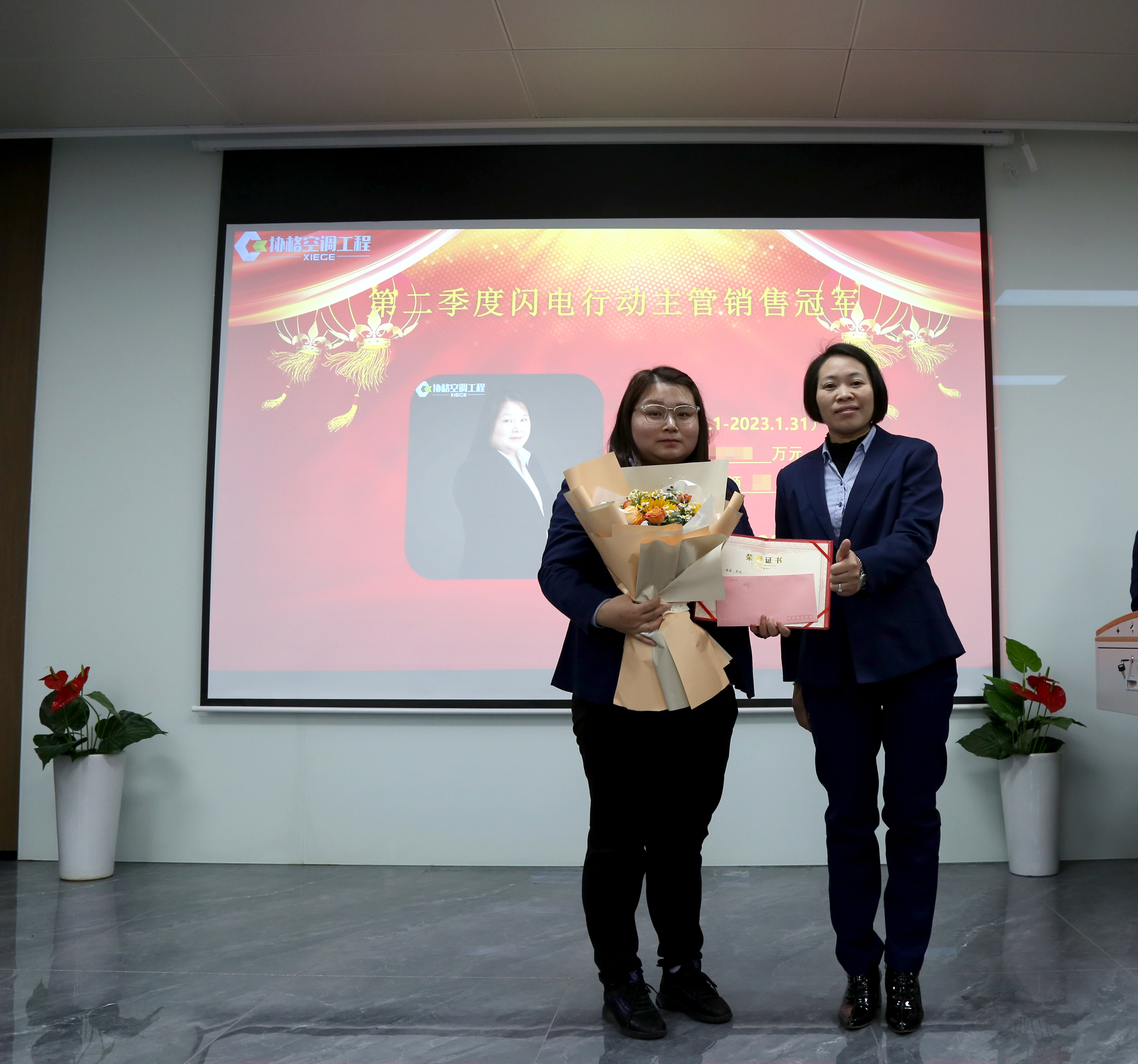 表彰會后我們迎來了上海協(xié)格機電2023冷年第二季度閃電行動頒獎典禮&第三季度高峰行動啟動會,路雖遠,行者將至,事雖難,做則必成,每一份赤誠的投入,每一個閃光的輸出,都不會被辜負,讓我們來目睹一下銷售獲獎?wù)叩娘L采吧!