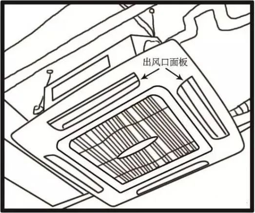 ②對(duì)于家用中央空調(diào)的風(fēng)口,除了能遇到上面這種風(fēng)管式,可能還會(huì)看見下面這樣的嵌入式天花機(jī),而它的出風(fēng)口就在天花機(jī)的四邊(如下圖),清理順序也是一樣的。