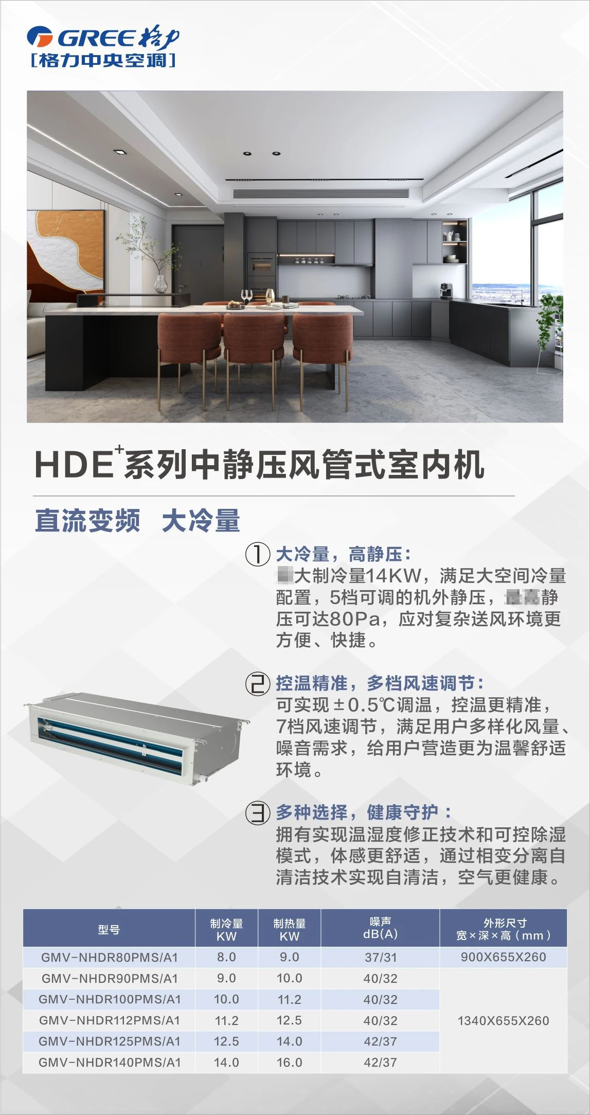 格力HDE+系列中靜壓風管式室內(nèi)機