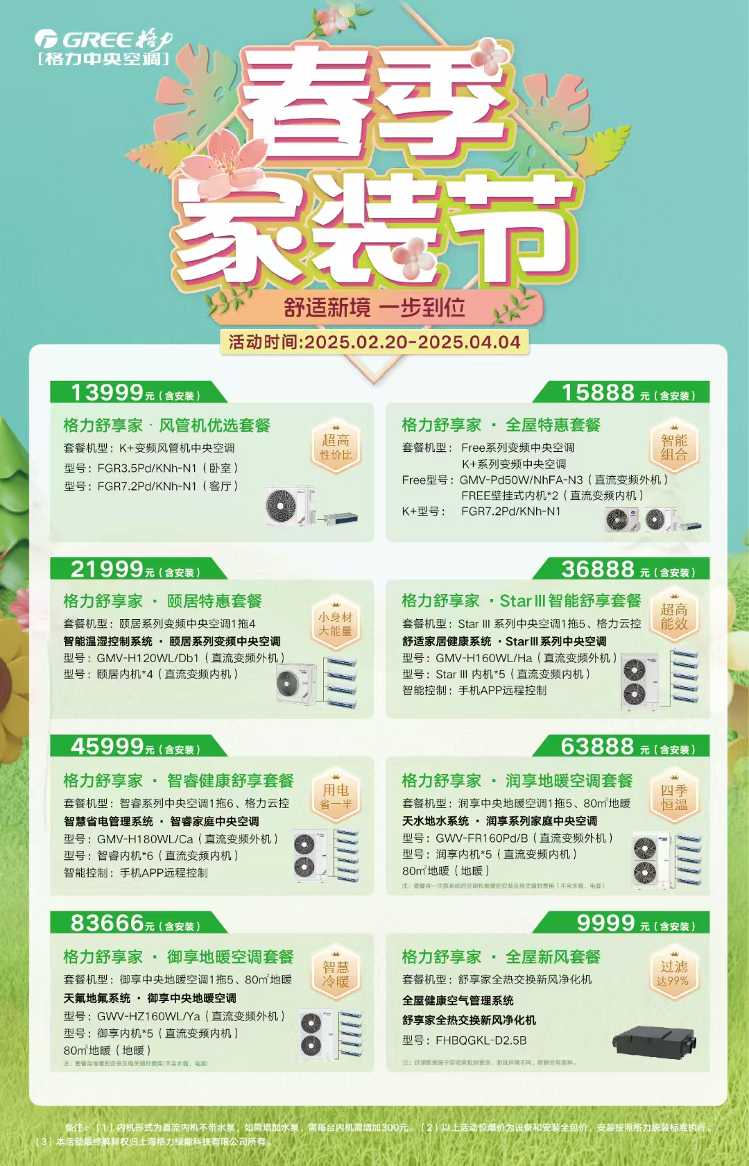 上海格力中央空調(diào)2025年度春季家裝節(jié)活動2月20日至4月4日隆重開啟,格力中央空調(diào)廠家補(bǔ)貼+政府節(jié)能補(bǔ)貼,雙重優(yōu)惠,價格親民!