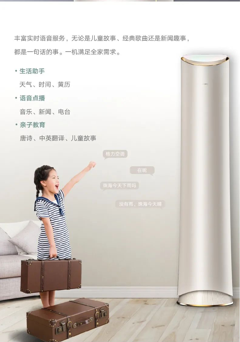 格力·明珠還是一款為智慧生活而生的空調(diào),因此還有一個(gè)功能不得不提——它搭載了AI語(yǔ)音控制技術(shù),連接智能語(yǔ)義理解平臺(tái),喚醒后通過(guò)對(duì)話就可輕松完成空調(diào)開關(guān)機(jī)、模式、溫度、風(fēng)速等的控制,這個(gè)功能離線也能繼續(xù)使用哦!