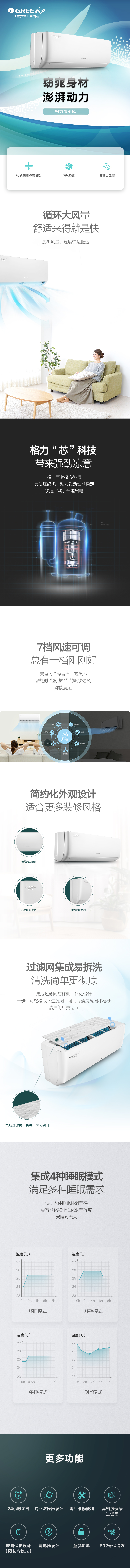 循環(huán)大風(fēng)量、過濾網(wǎng)集成易拆洗、獨(dú)立除濕、7檔風(fēng)速