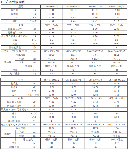 GMV Star家庭中央空調(diào)機組,容量范圍為8.0~33.5kw