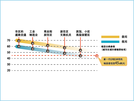 靜音模式下室外機噪音值僅為45分貝