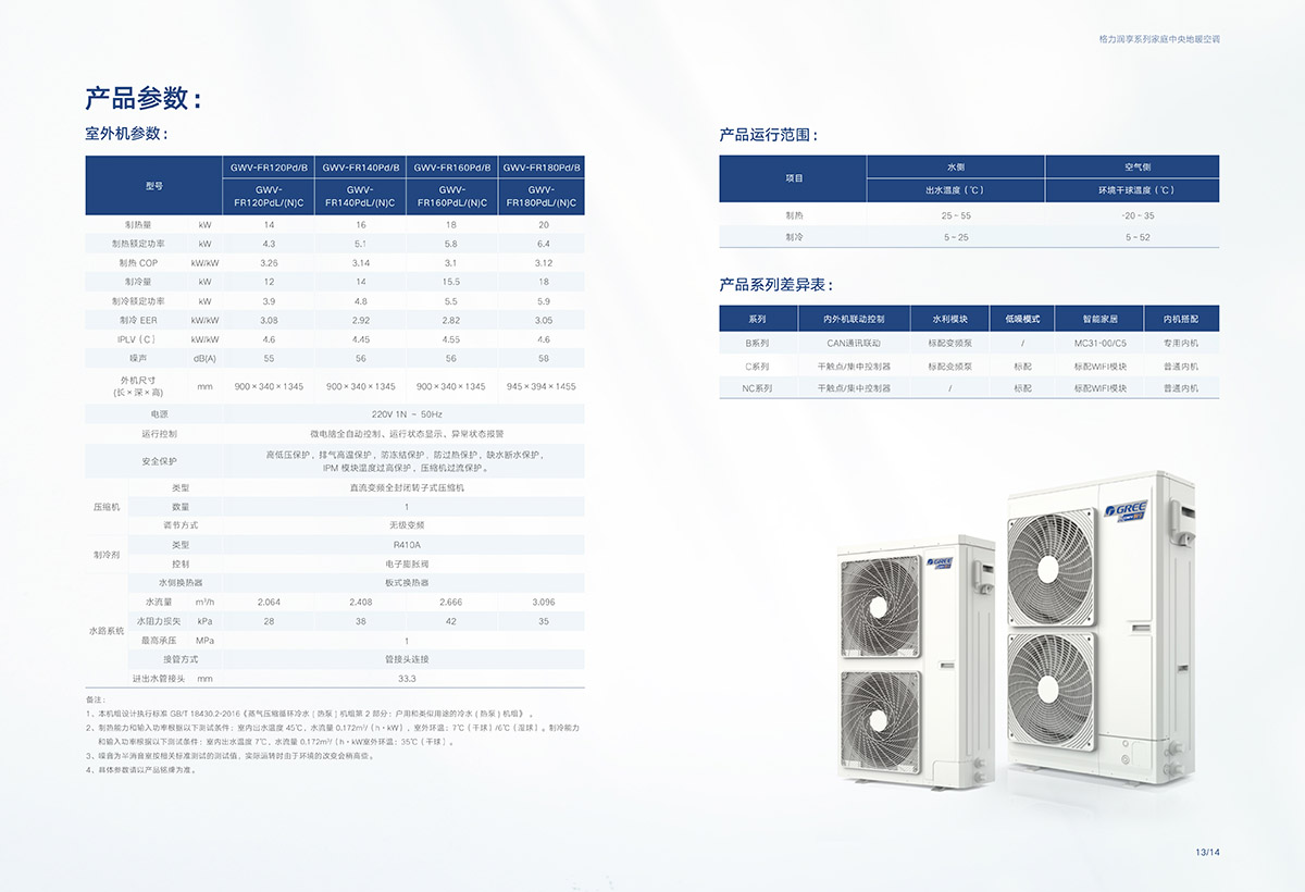 室外機(jī)參數(shù):GMV-FR120Pd/B; GMV-FR140Pd/B; GMV-FR160Pd/B; GMV-FR180Pd/B