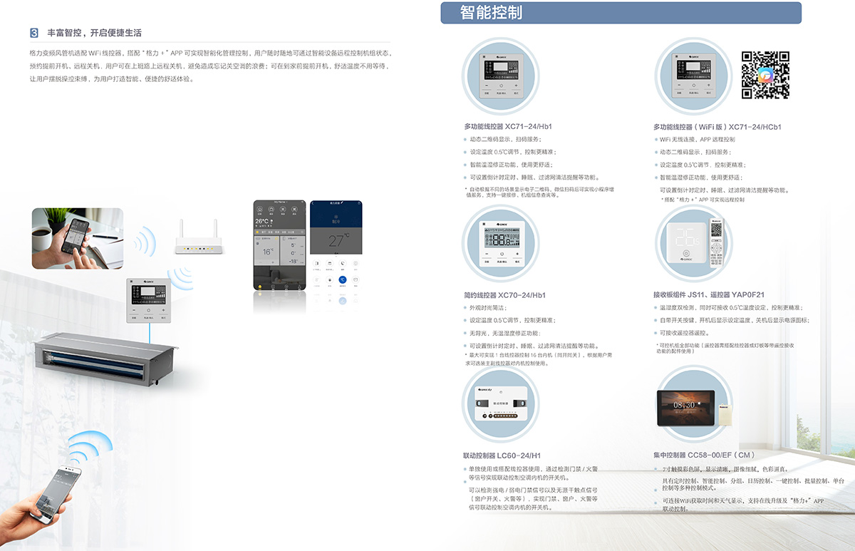 格力Ka+/ka系列風(fēng)管機(jī),可以搭配多款格力線控器、格力集中控制器。